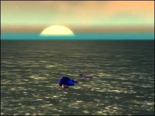 Algo desanimados por el encuentro, seguimos camino hacia mar abierto a un ritmo algo reducido debido a los regalos con que nos habían colmado. Al parecer nuestro nuevo perfil de alfiletero no resultaba demasiado hidrodinámico, y esto nos retrasó ligeramente mientras huíamos... esto... nos distanciabamos de nuestras nuevas amistades.