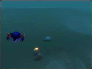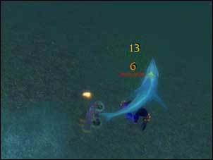 No tardamos en avistar el templo sumergido en el que habitaban los murlocs de los que nos habían hablado. Intentamos trabar contacto con el primer representante de la especie con el que nos cruzamos, pero la barrera idiomática resultó demasiado para nosotros.